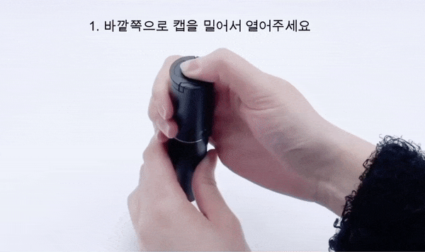 1. 배터리 캡 열 때 : 배터리 교체 시 수평으로 배터리 캡을 밀어서 열어주세요.