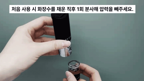 처음 사용 시 전용 화장수를 채운 직후 1회 분사해 압력을 빼주세요.
